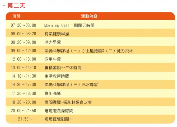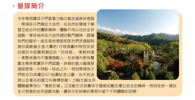 以上課程、流程安排,僅供家長瞭解活動內容使用,營隊實際進行時,力翰文創得依天候及場地因素調整活動內容
