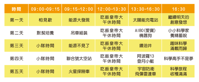 利用個人專屬的教材來進行實驗,實際組裝太陽能模型動力機械組,無論是車子、太空站,甚至是火星探險車...等等,都等著學童們來挑戰。最後還可以把這專屬個人的教具教材帶回家繼續進行研究喔!