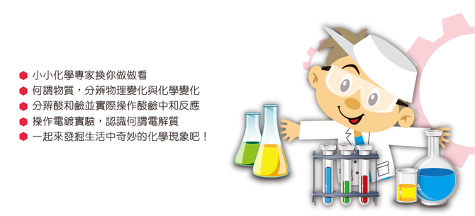 科寶想和媽媽一起做一頓大餐,科寶先從調製飲料開始,當他加糖到水中,攪拌之後發現糖顆粒漸漸消失了!科寶腦中突然浮現一個問號「如果加入很多的糖是不是也一定都會被水溶解呢?」科寶發現媽媽正在清洗牛排,但是明明牛排是在水裡面清洗的,為什麼牛排的油脂卻都跑到水面上來了?拿出刀叉準備享受大餐囉!科寶看到刀叉上居然有黃黃的污漬,媽媽告訴科寶,那其實是金屬生鏽現象!金屬為什麼會變成這樣子?難道是因為有蟲偷偷咬了幾口嗎?科寶想替媽媽的牛排加點鹽巴,但他將鹽罐打開後,發現裡面的鹽竟然結成一大塊,鹽巴不是一顆顆的嗎?鹽巴這樣是不是壞掉了?生活中充滿許多科學物質的變化,就讓我們一起來發現化學的神奇吧!