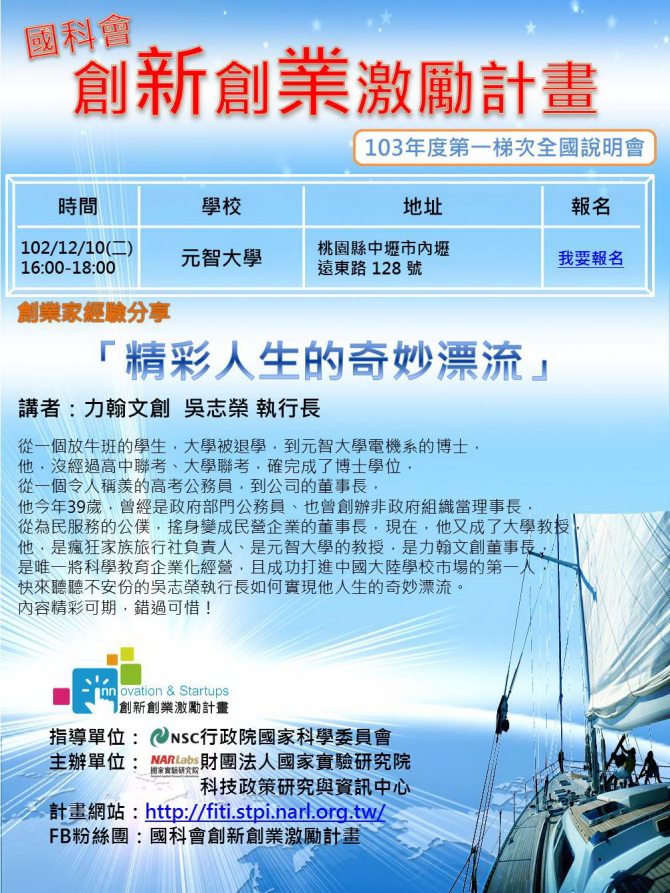 分享吳志榮執行長精彩人生的奇妙漂流(2013/12/05)